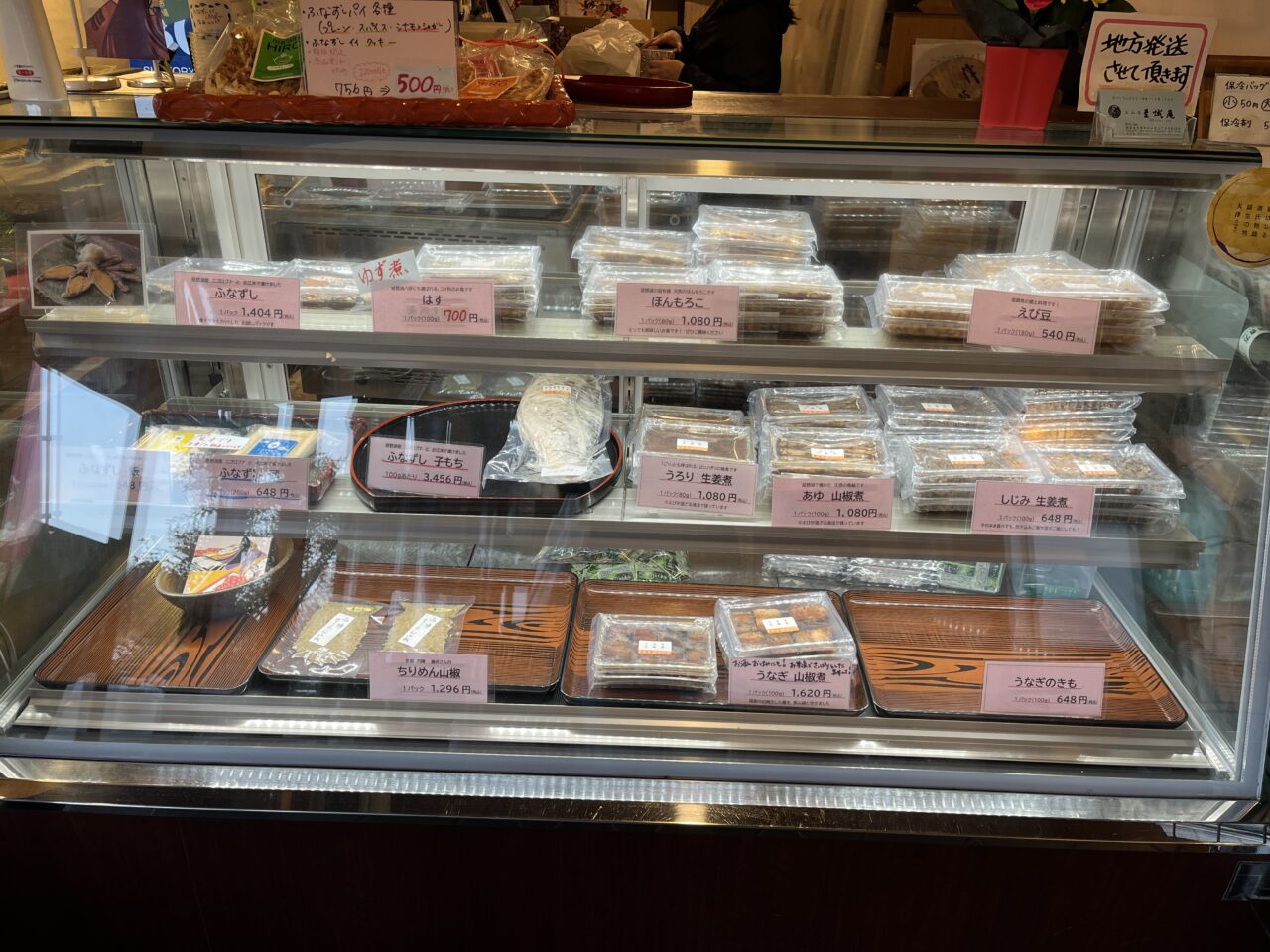 冷蔵庫のケースの中には、しじみだけではなく、ほんもろこや、はす、うろり、あゆなど、琵琶湖で採れるさまざまな食材を使った加工食品が、ずらりと並んでいます。地方発送もしているとのことなので、湖国の味を、他地域に住んでいる人たちに味わっていただくこともできそうです。